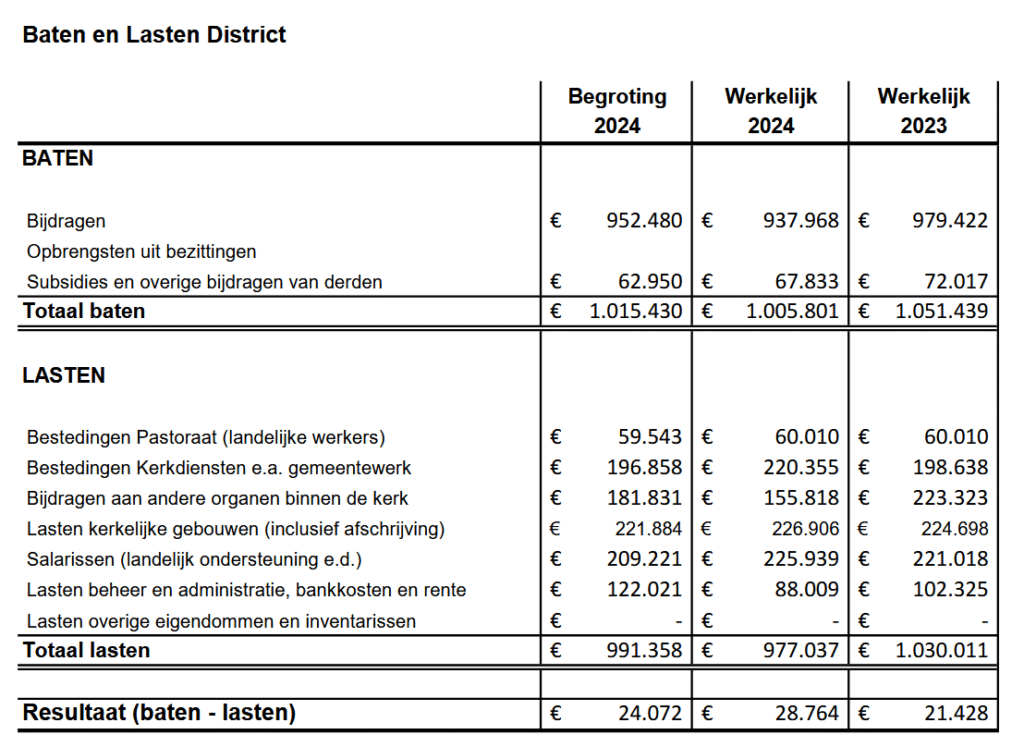 De jaarcijfers over het boekjaar 2024 zijn door een kascontrolecommissie onderzocht, en op aanbeveling van de commissie heeft de jaarlijkse Districtsvergadering van de Kerk van de Nazarener in Nederland op 21 maart 2025 de jaarcijfers goedgekeurd en de penningmeesters decharge verleend.